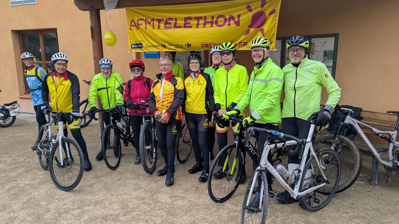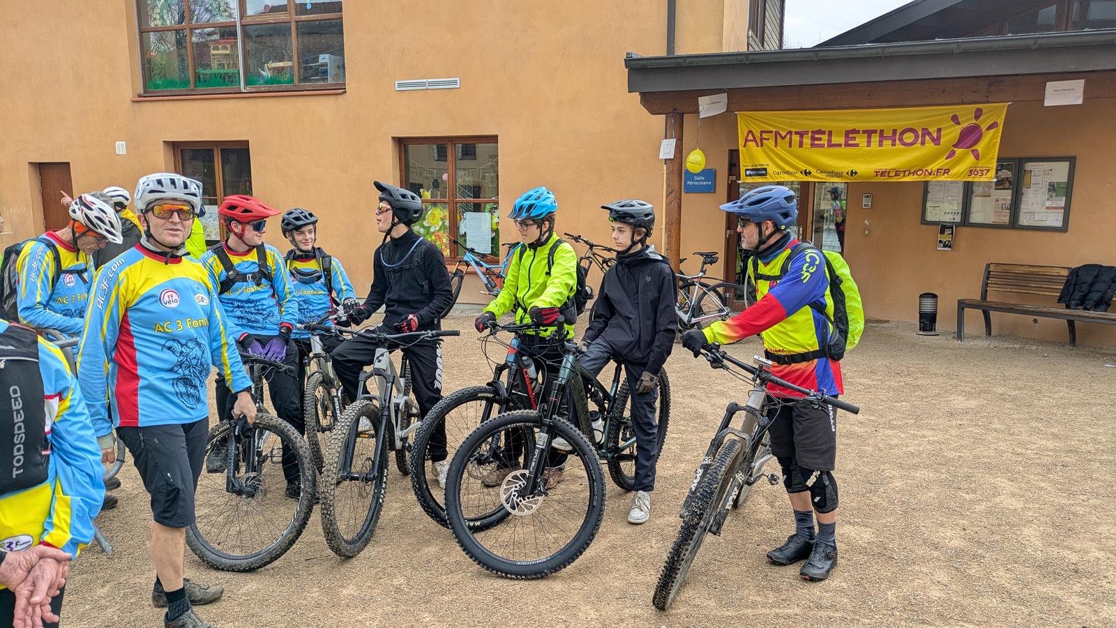 Encore une fois, malgré un temps maussade, l' AC3F a rassemblé, à Fontaines Saint Martin, ce samedi 6 décembre, une bonne centaine de cyclos (145 participants au total) venus rouler et marcher (VTT, marche, route et gravel) pour le Téléthon .