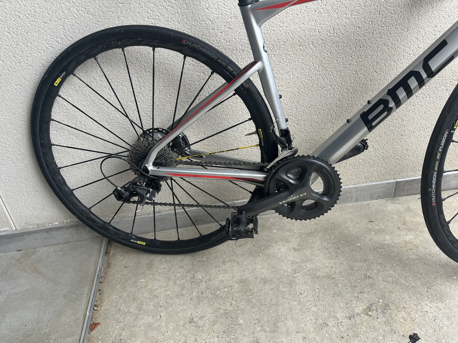 À vendre Vélo gris homme route cadre BMC road machine RM01 chrome 2018 Taille 51 roues MAVIK KSYRIUM PRO UST DIsc 2018 avec pneus SHIMANO frein à disque 6 trous 26 mm paire de roues. Révision complète en juillet 2025. Montant 433.95 euros. (Facture)prix d'achat 5 500 euros du vélo en 2018.PRIX DE VENTE 930 euros. 📞 06 81 10 31 33